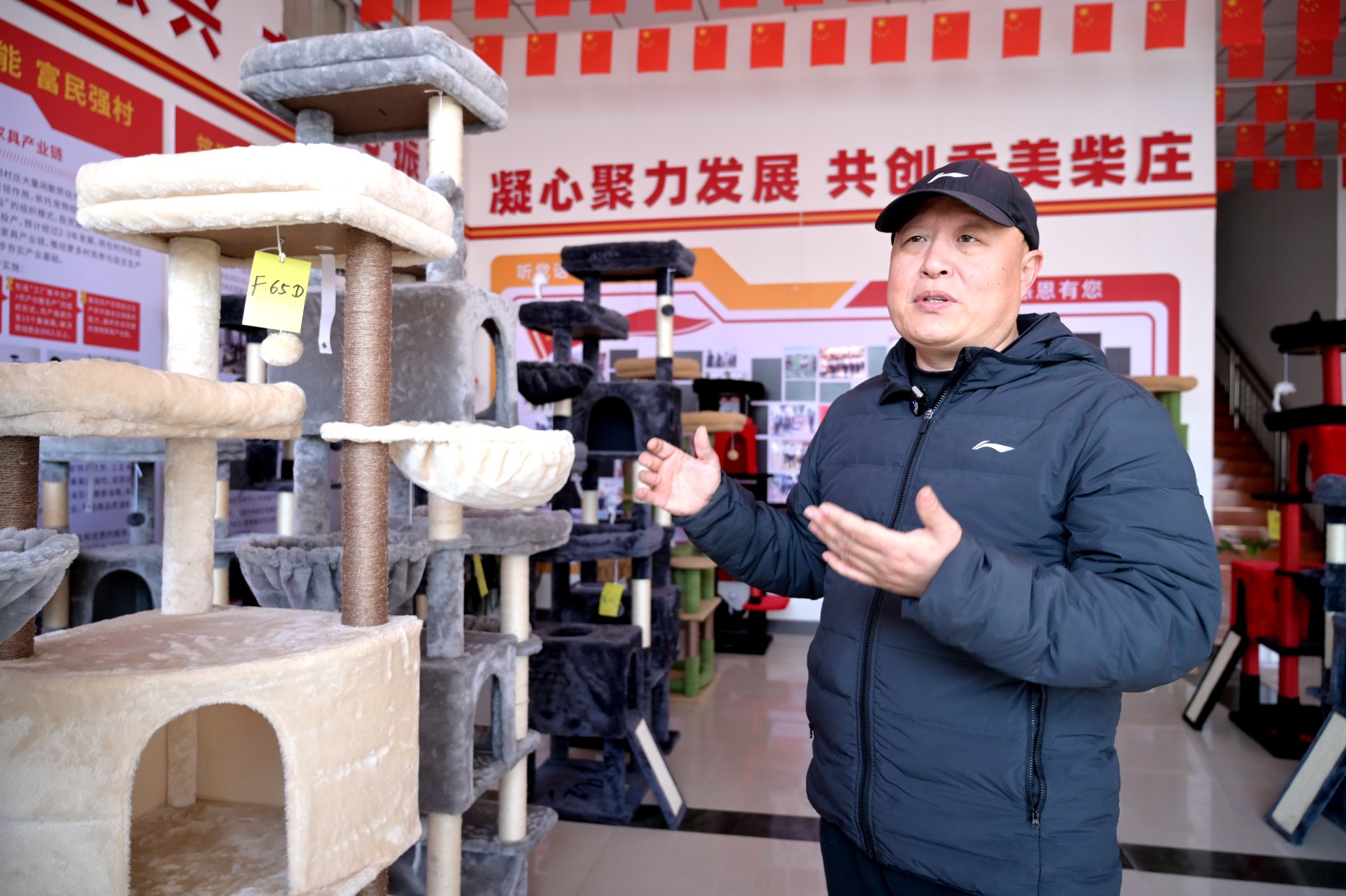 “2024年3月,我們在村里投資建設(shè)了寵物家具廠,引進寵物家具生產(chǎn)線,當年9月投產(chǎn)?!壁w亞軍說。如今,柴莊村的寵物家具產(chǎn)業(yè)已初具規(guī)模。家具廠占地面積3000余平方米,生產(chǎn)寵物爬架、寵物玩具等系列產(chǎn)品。銷售渠道也日益完善,通過亞馬遜、沃爾瑪?shù)葒H電商平臺,產(chǎn)品遠銷日韓、歐美等國家和地區(qū),帶動200余人就業(yè),促使村民年增收3萬多元。