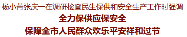 2月15日,市委書記楊小菁、市長張慶一到禹州市調(diào)研檢查春節(jié)期間民生保供、安全生產(chǎn)等工作,并向基層干部群眾送上黨委政府的關(guān)懷和祝福。