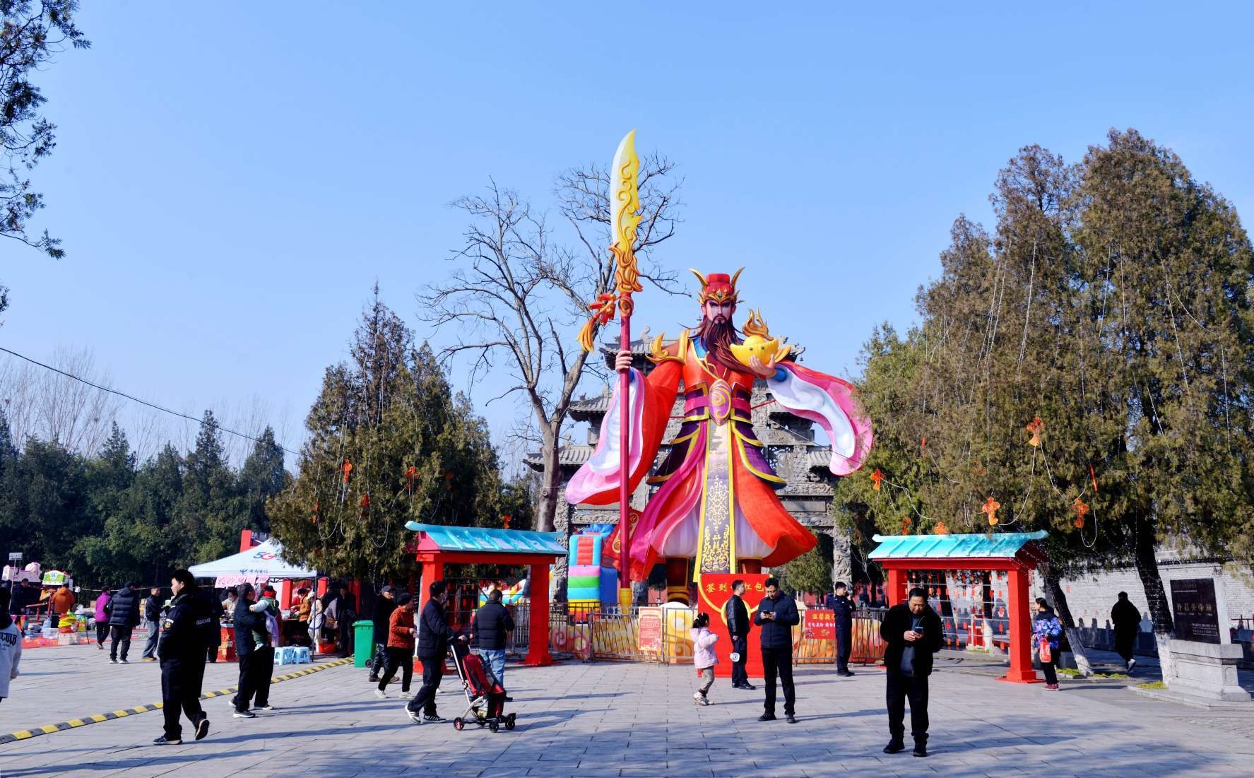 2月21日,灞陵橋景區(qū)。該景區(qū)設(shè)置的大型卡通關(guān)公像吸引了眾多游客。本報記者 呂科 攝