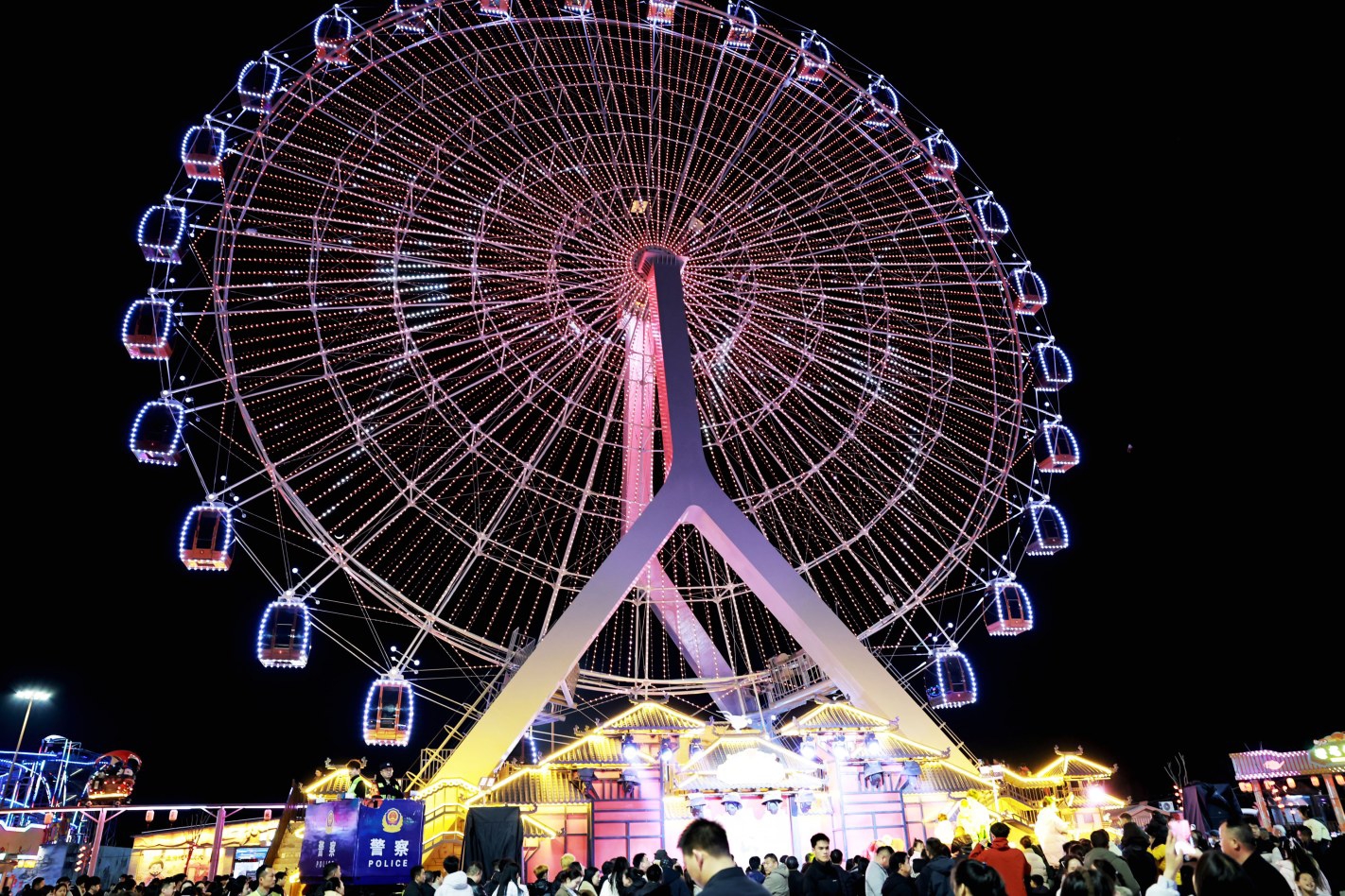 2月20日晚,曹魏歡樂城巨型摩天輪燈光璀璨。本報記者 喬利峰 攝