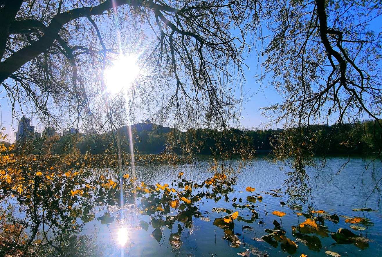 潁河濕地則多了幾分清雅。殘荷立在水中,枯瘦的枝丫擎著褐黃的蓮蓬,承著細碎的陽光。岸邊蘆葦輕搖,雪白的絮毛隨風曼舞,與垂落的金黃柳葉纏綿。偶有水鳥掠過,翅尖劃破水面,攪碎這幅暖冬靜畫,留下一圈圈溫柔的漣漪。