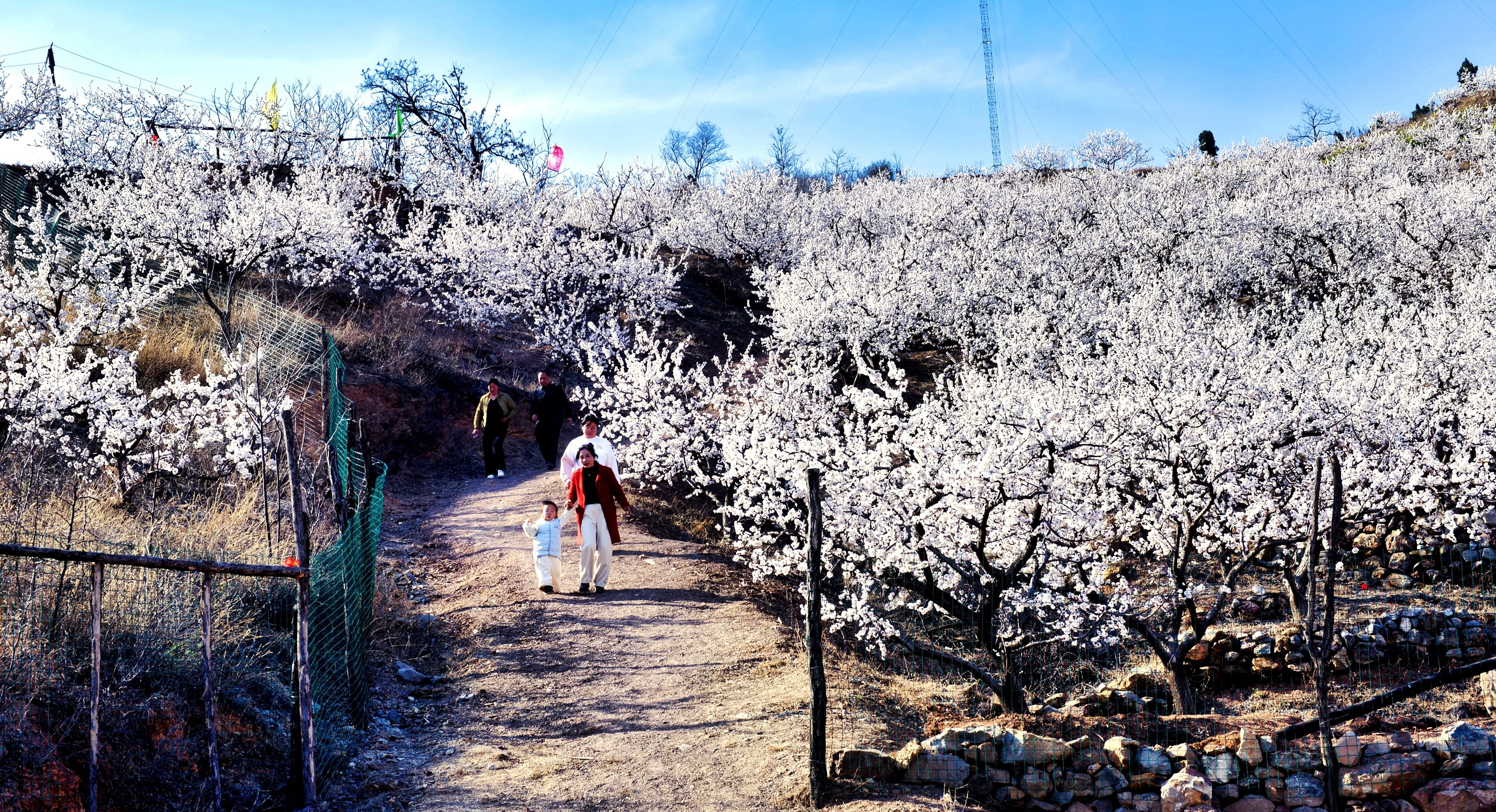 潔白的杏花迎春怒放,似雪似夢,似云似霧,密密匝匝,蔚為壯觀。